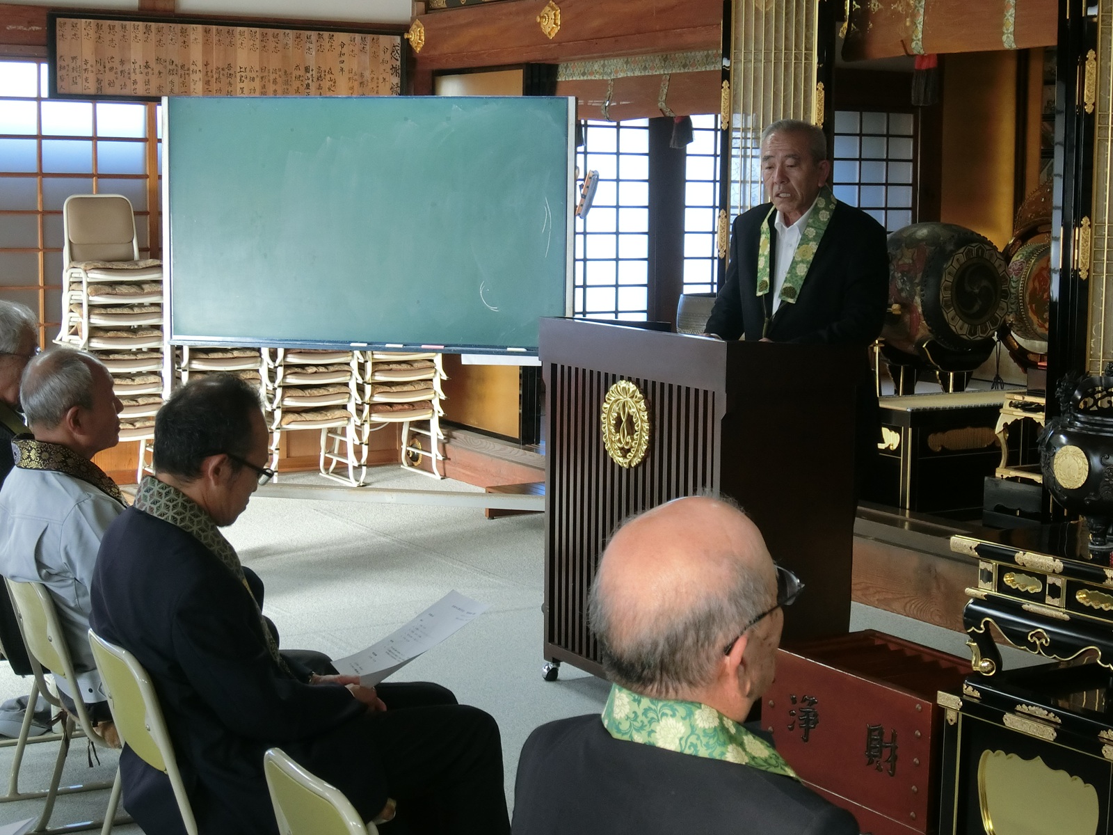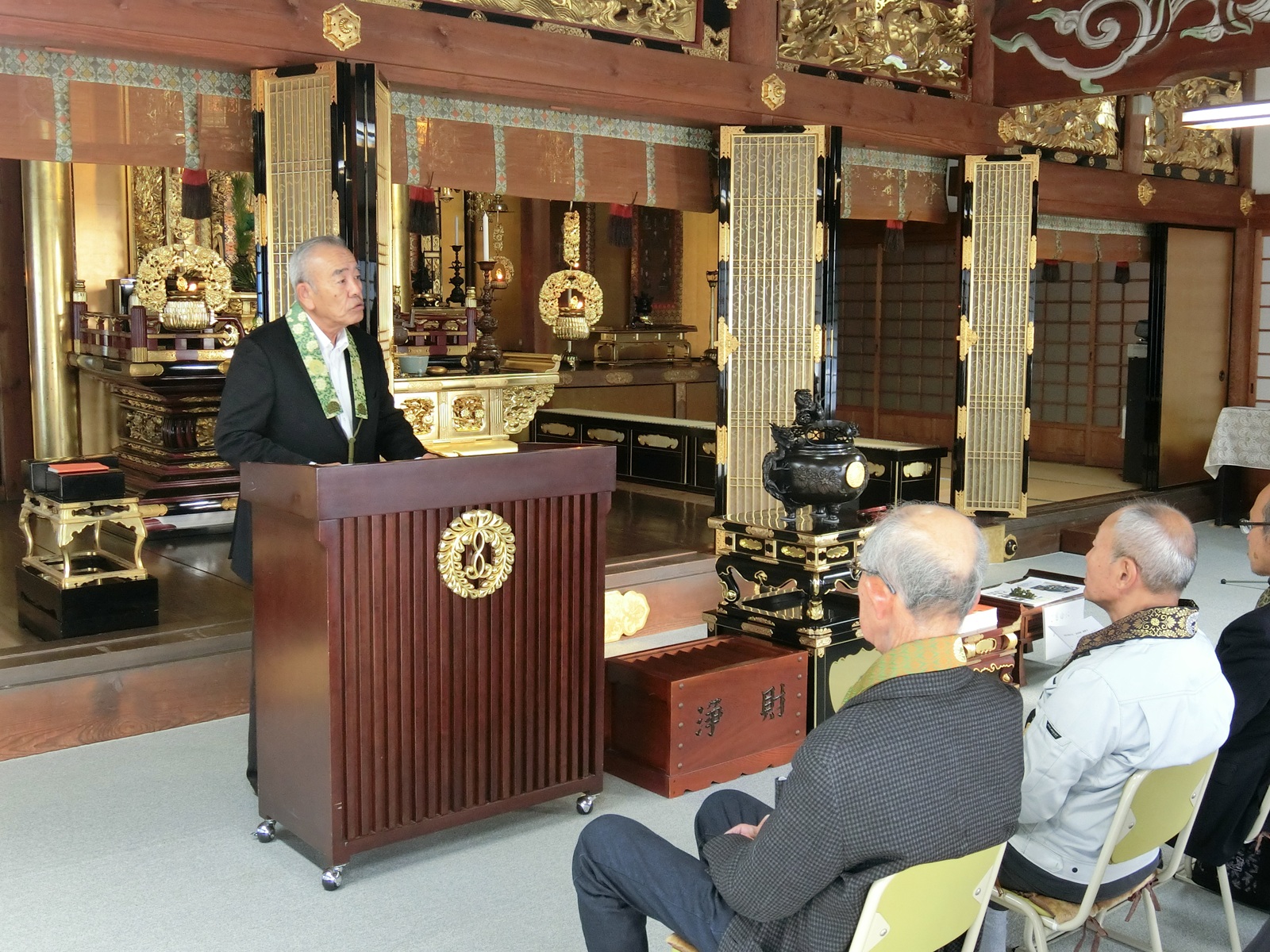 盟理事長・正蓮寺仏壮会長の須山宏幸氏から「仏壮の現状と今後への提案」についてお話を頂きました。