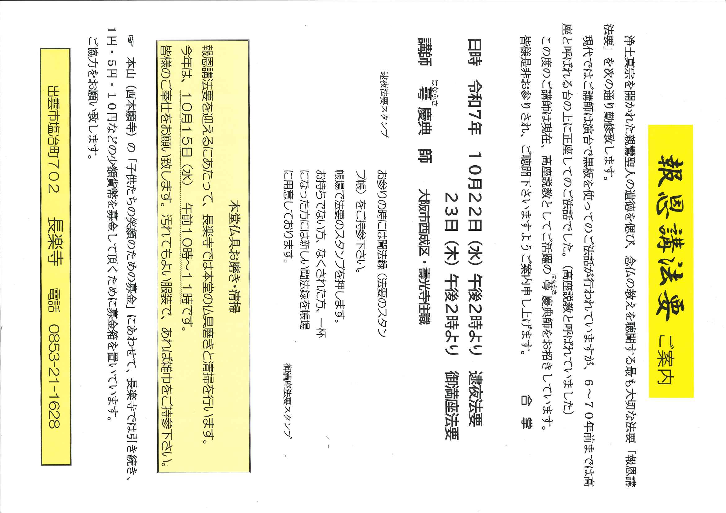 〒693-0021 島根県出雲市塩冶町702 TEL:0853-21-1628 FAX:0853-21-1601 Mail:chourakuji@my.izumo-net.ne.jp
