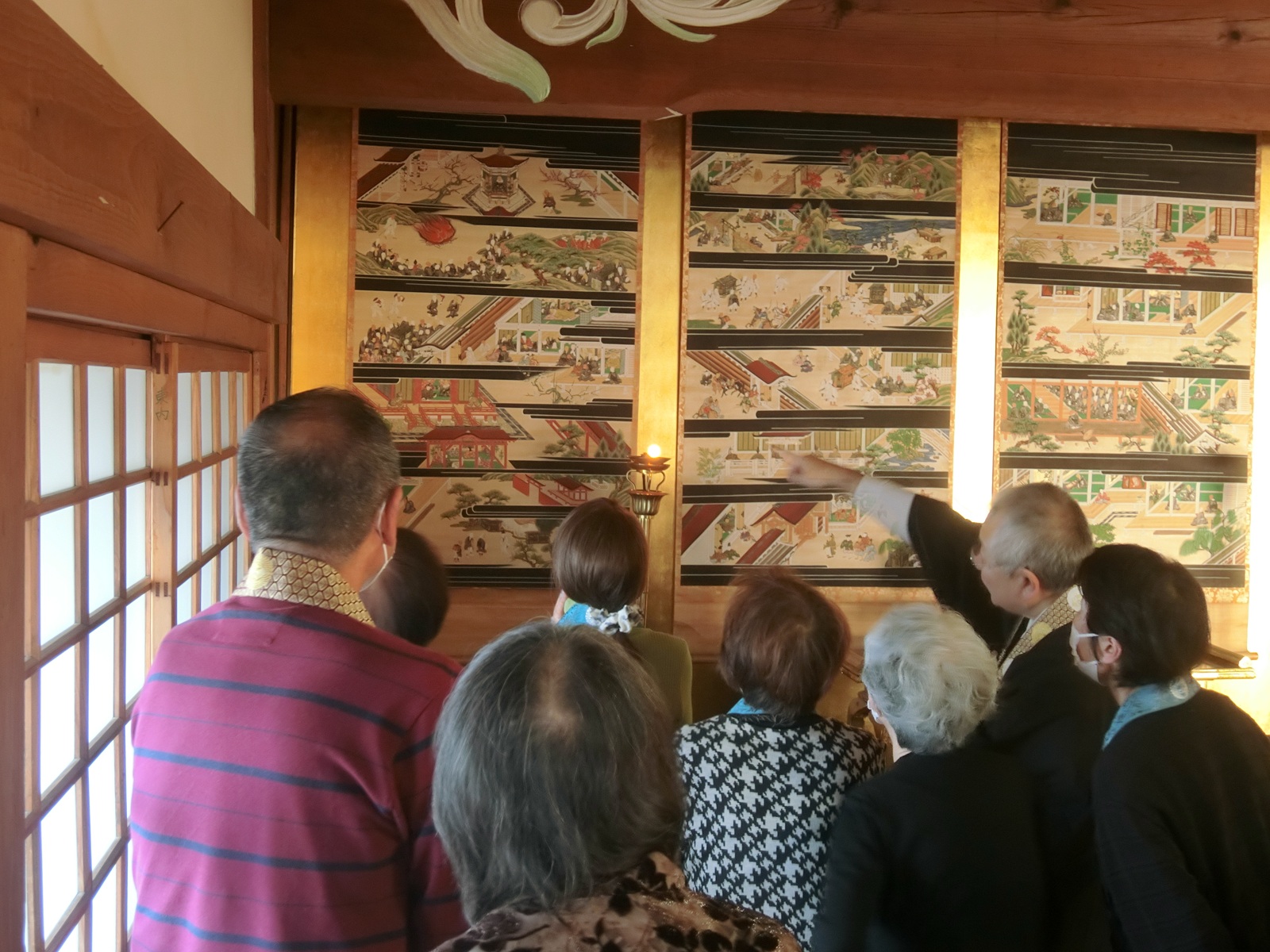 二日目の法要後には蕚師による親鸞聖人御絵伝(親鸞聖人の御生涯を表した絵の掛軸)の絵解きを頂きました。