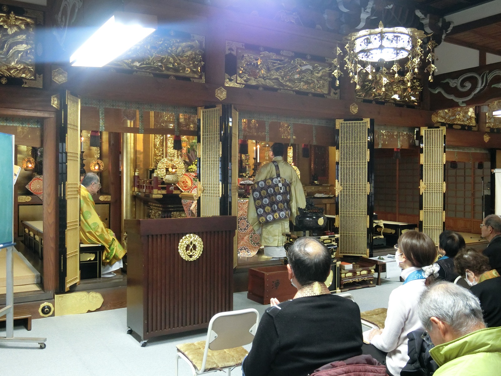 お勤めは正信偈を、あらたまった時に唱える音階の行譜で参拝者一同で行いました。